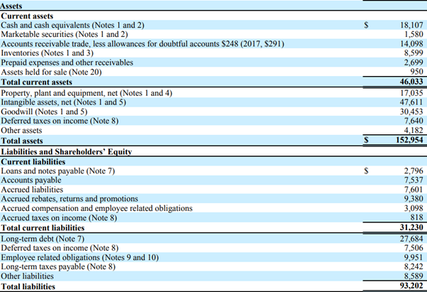 Johnson & Johnson – Extract from Footnote 8 (Income taxes), Annual report 2018