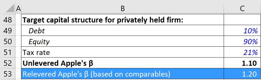 We have then used the median unlevered beta, accounted for the target capital structure, and arrived at the relevered beta.