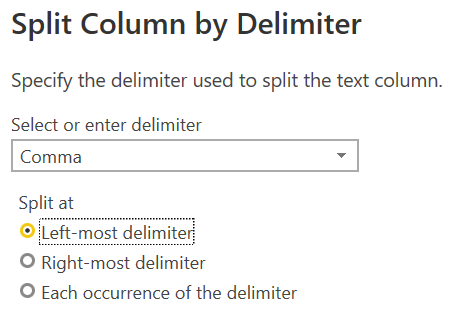 There are different ways to split a column. One of the most common is with a delimiter. This means you can identify a character such as a comma to tell the program where to split the text in each row: