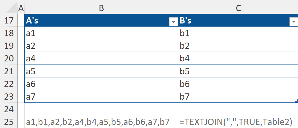 =TEXTJOIN(delimiter, ignore_empty, text1, [text2], …)
