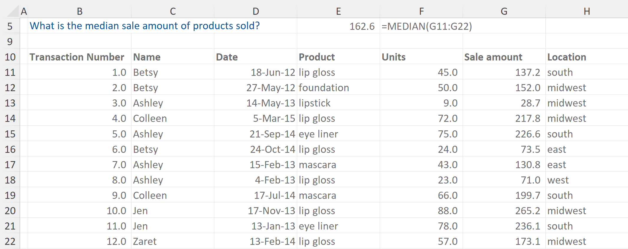In this example we are asked for the median sale amount per transaction.