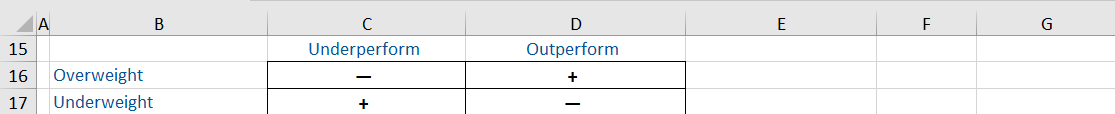 Here is a summary of how alpha is created or destroyed based on the portfolio manager being overweight or underweight and on the securities’ performance in the benchmark.