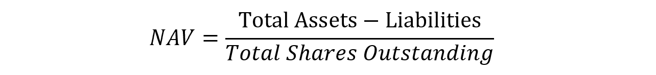 While AUM relates to the total market value of all the assets managed under a fund or a firm, the Net Assets Value (NAV) is a measure of the per-share value of a fund. It is calculated by subtracting a fund’s liabilities from its total assets and then dividing by the number of outstanding shares. Below is the calculation formula.