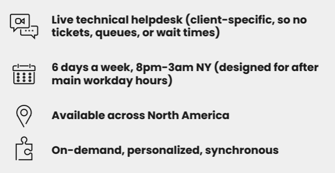 Our solution to the client’s challenge was to build a live HelpDesk that’s accessible (at all levels – from new analysts to directors) after hours. The solution was custom built for the client, and the process is completely streamlined – there are no tickets, no support queues, no help centres. Anybody that needs help – whether it’s finding an error in a model, sense checking a valuation, or seeking advice or guidance, can connect immediately and anonymously with one of our on-call industry experts. This ranges from emails to Zoom calls with screen sharing (even when participants can be seen by the support staff, but this is not fed back to the client to ensure anonymity).