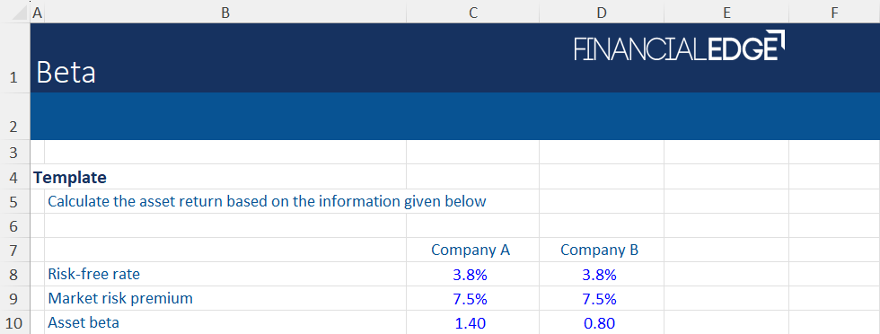 Let’s use the following information about two companies to further investigate beta. Download the free Financial Edge excel template to do the beta calculations yourself.