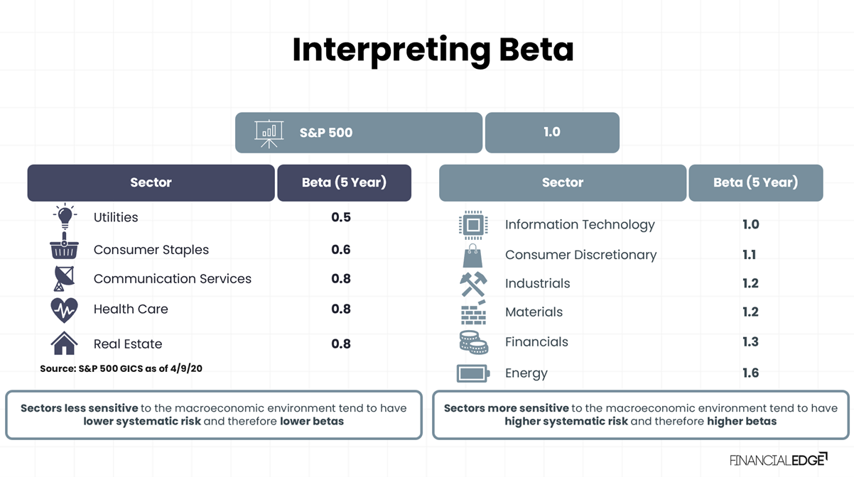 Sectors that are more sensitive to the macroeconomic environment tend to have higher systematic risk and therefore higher betas.