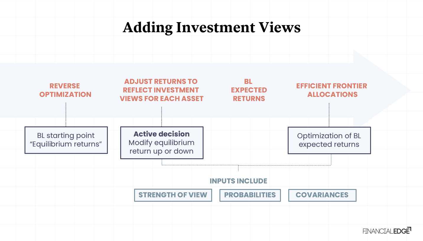 - The model combines both passive input for expected returns using and investor forecasts of expected returns (i.e. unique active views)