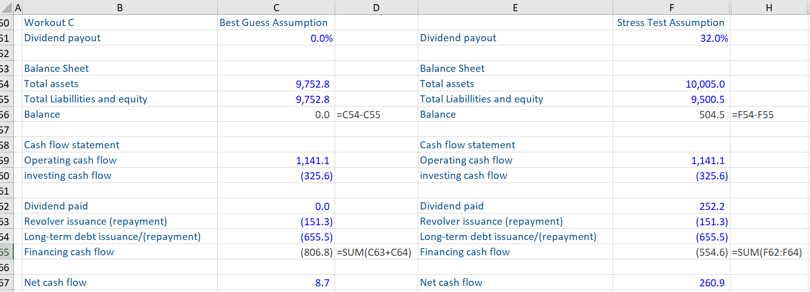 The balance sheet usually ‘balances’ the entire model should be checked in detail using these three checking techniques. Once this has been completed, stress testing the entire model can be very powerful and will often find subtle errors or those that are not causing an obvious problem.