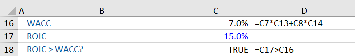 From the table, we can see that the ROIC is higher than the WACC. This indicates that the returns generated by the company are higher than the cost of capital required to generate those returns. Investors are likely to invest in such a company. Learn more about WACC calculation with our online investment banking course.