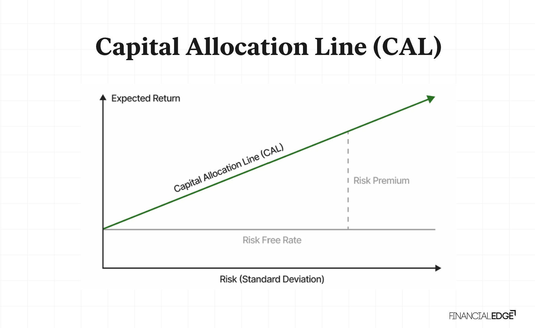 - The Capital Allocation Line (CAL) demonstrates the relationship between risk and return of a portfolio that holds both the risk-free asset and risky assets