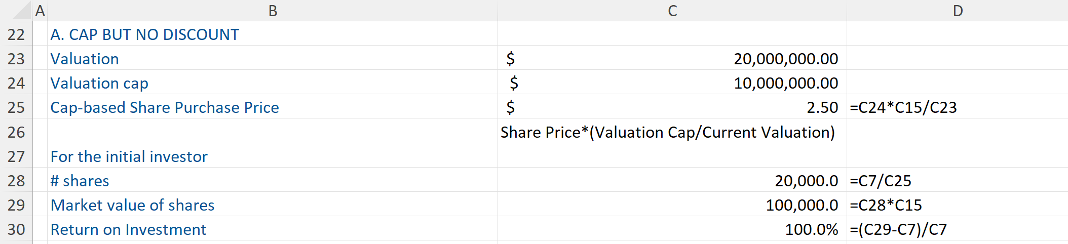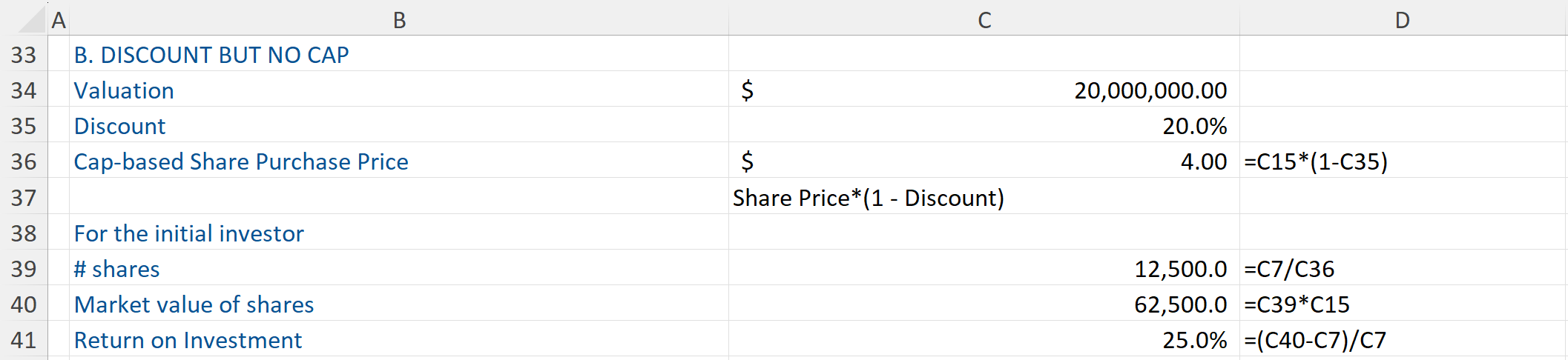 This next example looks at what the note would be worth if it had the 20% discount but no valuation cap:
