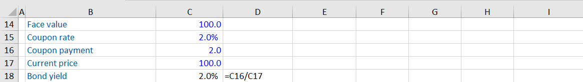 In this example, the bond is trading at its face value. That is why the bond yield is the same as the coupon rate.