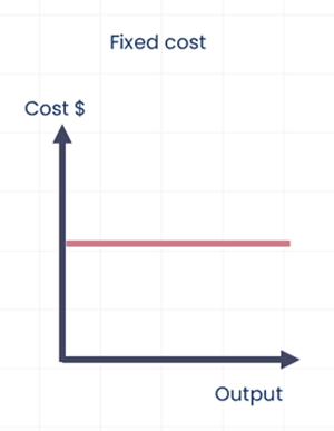 The graph below shows fixed costs, the X horizontal axis shows Output, and the vertical Y axis shows Costs. As you can see an increase in output does not lead to an increase in costs.