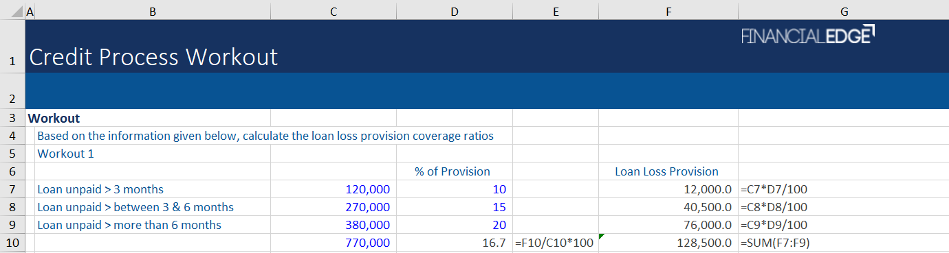In the second example below, we use the following formula to calculate the loan loss provision coverage ratio.