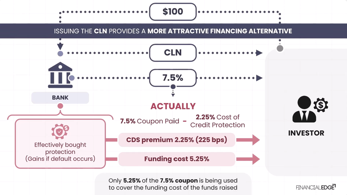 If the bank’s usual funding cost from long-term deposits or bond issuance are higher than five and a quarter percent, issuing the CLN provides a more attractive financing alternative.