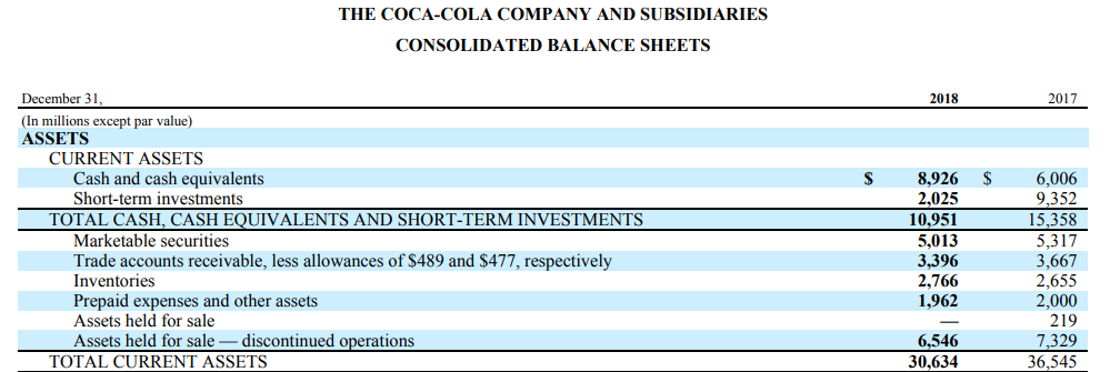 Below shows an extract from the Coca-Cola company’s balance sheet: