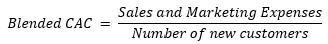 - Blended CAC: this includes all sales and marketing expenses