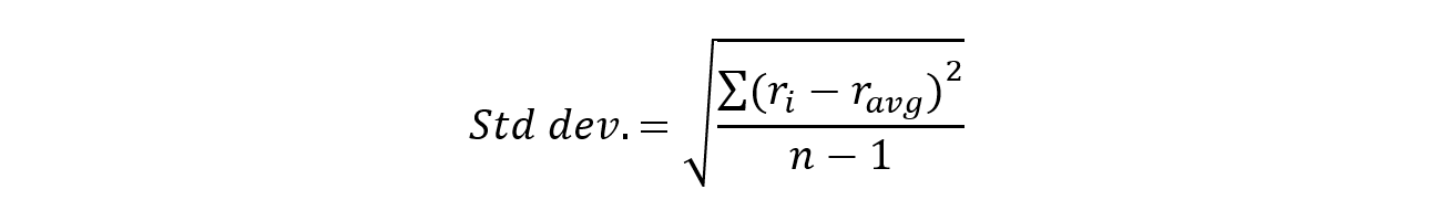 Std dev.= √ (∑ (r_i-r_avg) ^ 2 / (n-1))