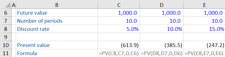 Example: Calculate the present value based on the annual return (discount rate) to investors