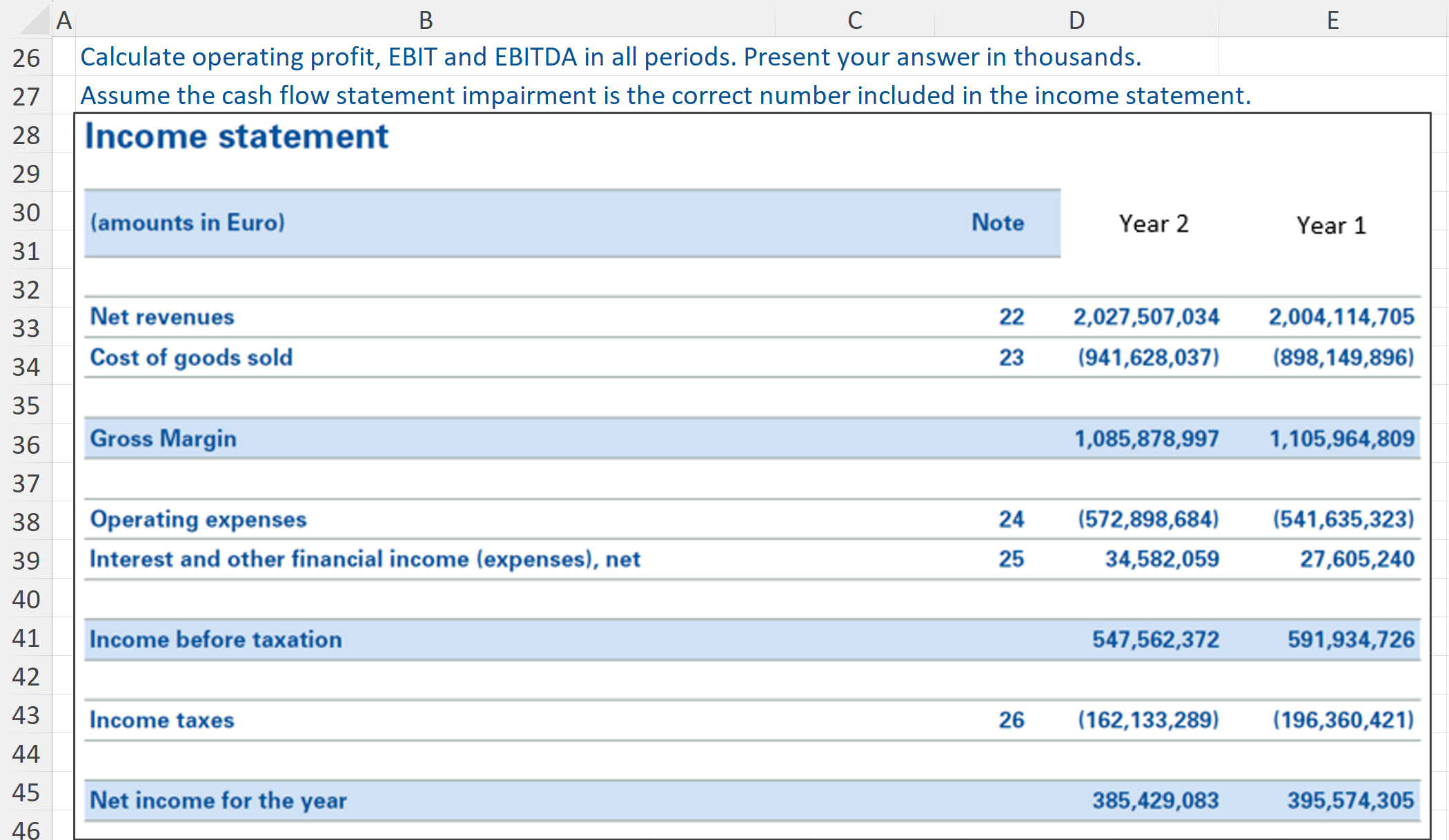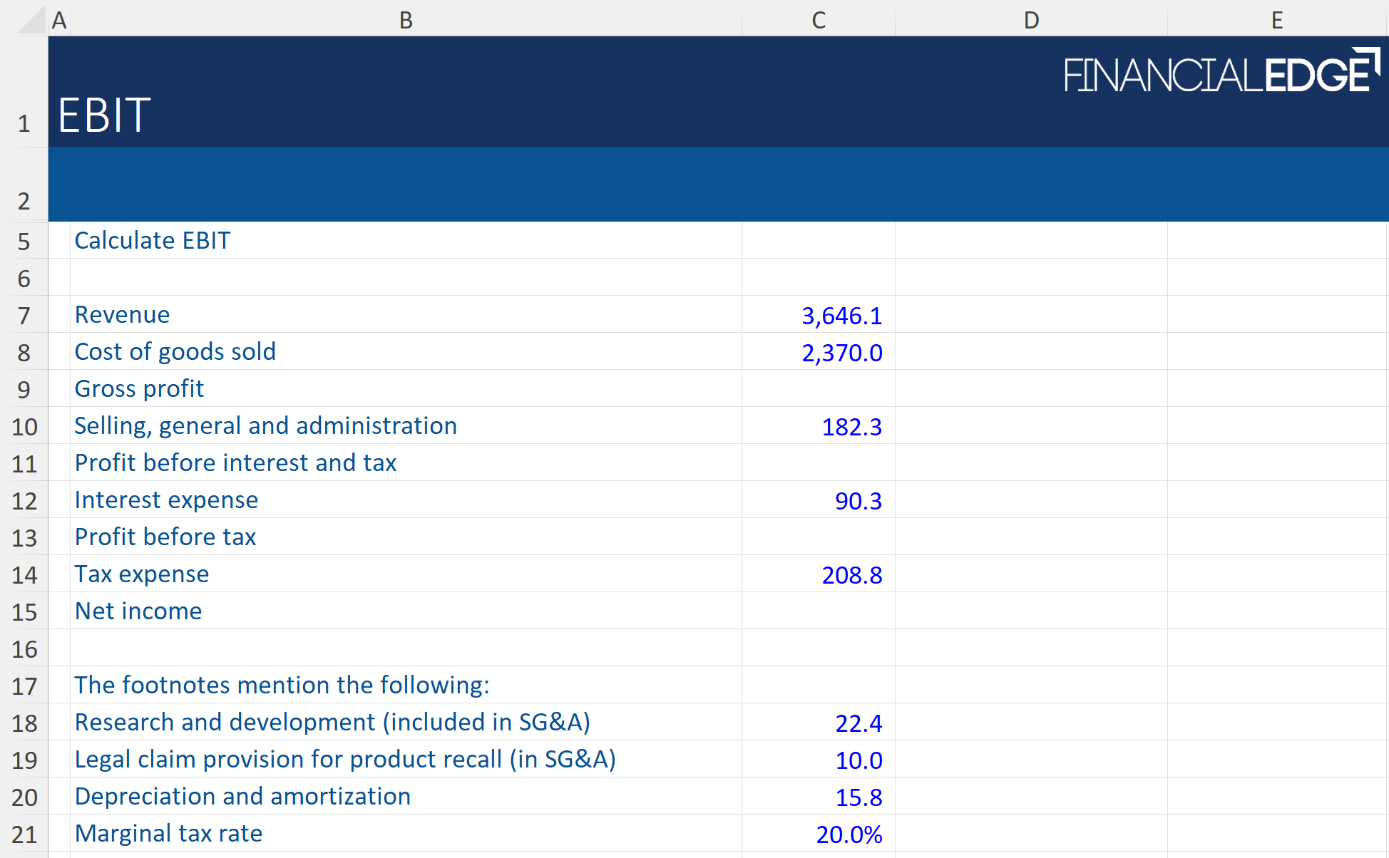 The first template will show how to calculate EBIT from a simple income statement which also contains footnotes with unusual items.