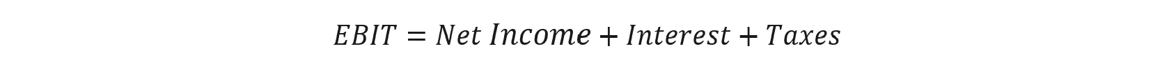 EBIT = Net Income + Interest + Taxes