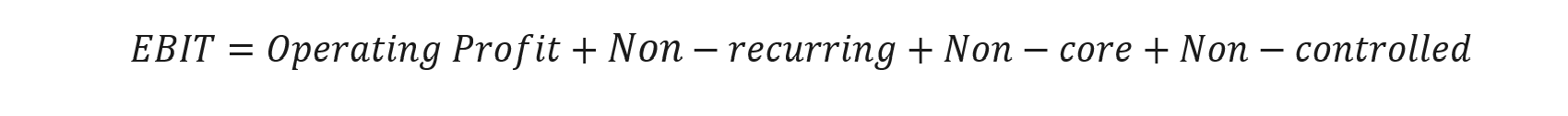 EBIT = Operating Profit + Non-recurring + Non-core + Non-controlled