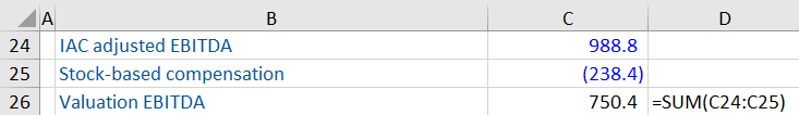 For IAC you should deduct the stock-based compensation from their adjusted EBITDA number to get an EBITDA for valuation purposes: