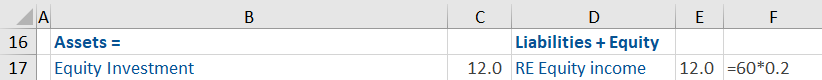 - Although Company B earned $60 million net income, Company A only reports 20% of that in their books since that is their investment in Company B.