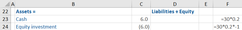 Company A buys 20.0% of the equity of Company B from the shareholders of Company B for 100.0 in an all cash deal. What are the impacts on Company A’s financial statements as a result of this deal?