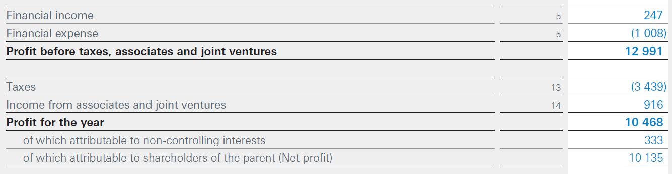 On the income statement is a one-line called “Income from Associates and Joint Ventures”. The line is below tax and shown net of taxes. So Nestle’s share of income from equity method investments (which is largely L’Oreal) is 916MM.