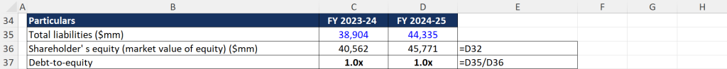 Debt-to-equity ratio remained nearly flat, indicating stable leverage relative to the market value of equity. Note: Market data is as of April 15th, 2025. Share price for FY 2023-24 is as of April 15th 2024.