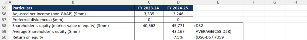 Return on equity (ROE), on the other hand, is higher at 7.5%, signifying that the company earns 7.5 cents in profit for every dollar of shareholder equity. ROE specifically assesses profitability from the viewpoint of shareholders, emphasizing returns generated from equity investments
