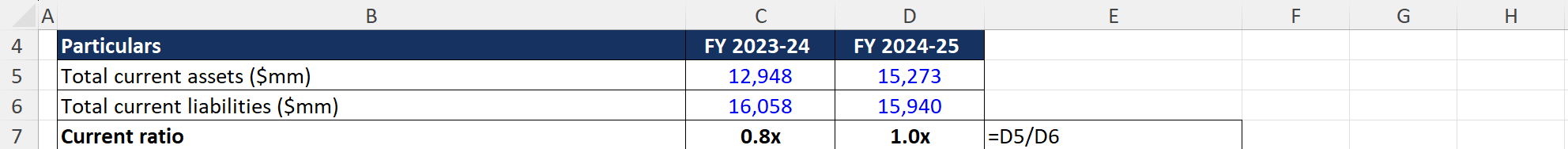 Current ratio improved from 0.8x to 1.0x, indicating a better ability to meet short-term obligations.