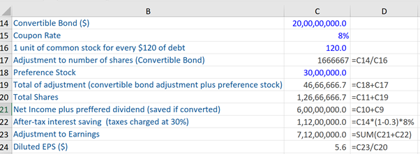The other is Diluted EPS, which arises only if a firm has a complex capital structure i.e. that includes dilutive securities. These securities are any financing instruments that can be converted or exchanged into common stock, thereby potentially reducing EPS in the future. Examples of such securities are convertible debt, options and warrants (for calculations, please refer to the example in the next section).