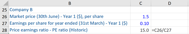 Price-earnings ratio: this ratio is used to help to decide whether a company’s equity shares are undervalued or overvalued relative to earnings. Further, it is one of the most commonly used investment ratios. The PE ratio is defined as:
