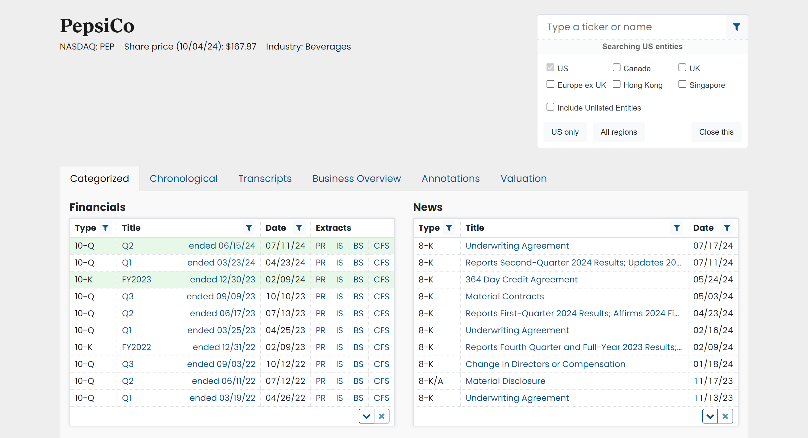 The 10K report will appear in the Financials, which are listed in chronological order starting with the most recent report. This may be a 10Q if midway through a company’s fiscal year, but the latest 10K will be available near the top of this list.