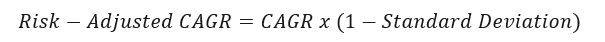 Investors would need to use standard deviation to look at the volatility of the performance. This can be added into the CAGR calculation to produce a risk-adjusted CAGR using this formula: