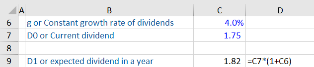 g = Constant growth rate at which dividends are expected to grow, in perpetuity