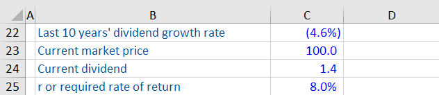 Assuming the investors are expecting a rate of return of 8%, the present value of the stock works out to $10.6. That’s way off from the market value of the stock and thus is not reliable.