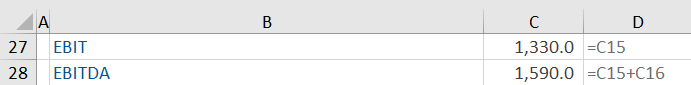 First, we calculate the EBITDA using the LTM EBIT and LTM depreciation and amortization.