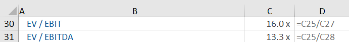 Next, we calculate the EV/EBIT and EV/EBITDA.