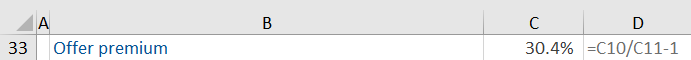 We calculate the offer premium for this acquisition by comparing the offer price and the unaffected share price.