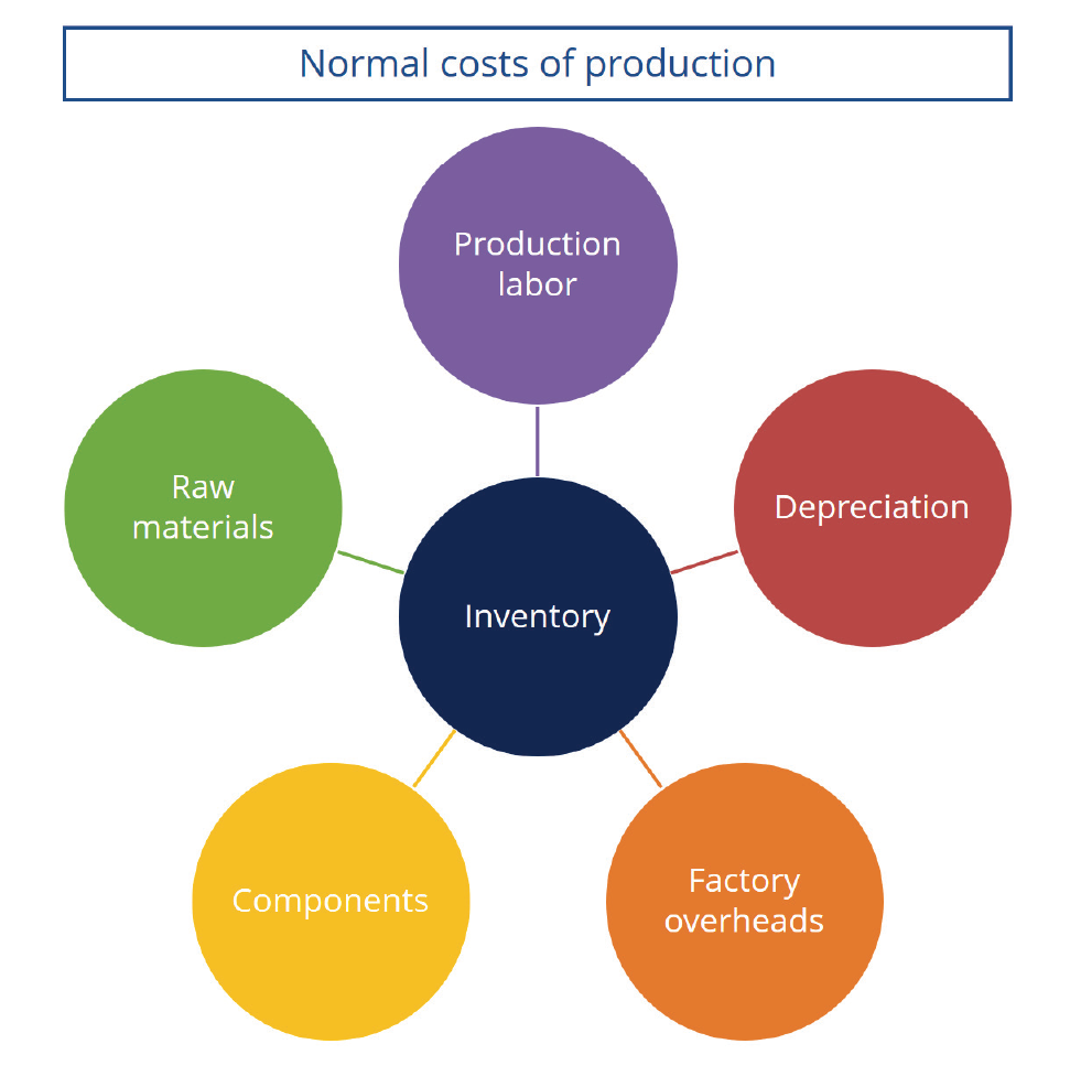 Production is a complex business process and the cost of inventory includes all items such as labor, depreciation, factory overheads, components and raw materials: