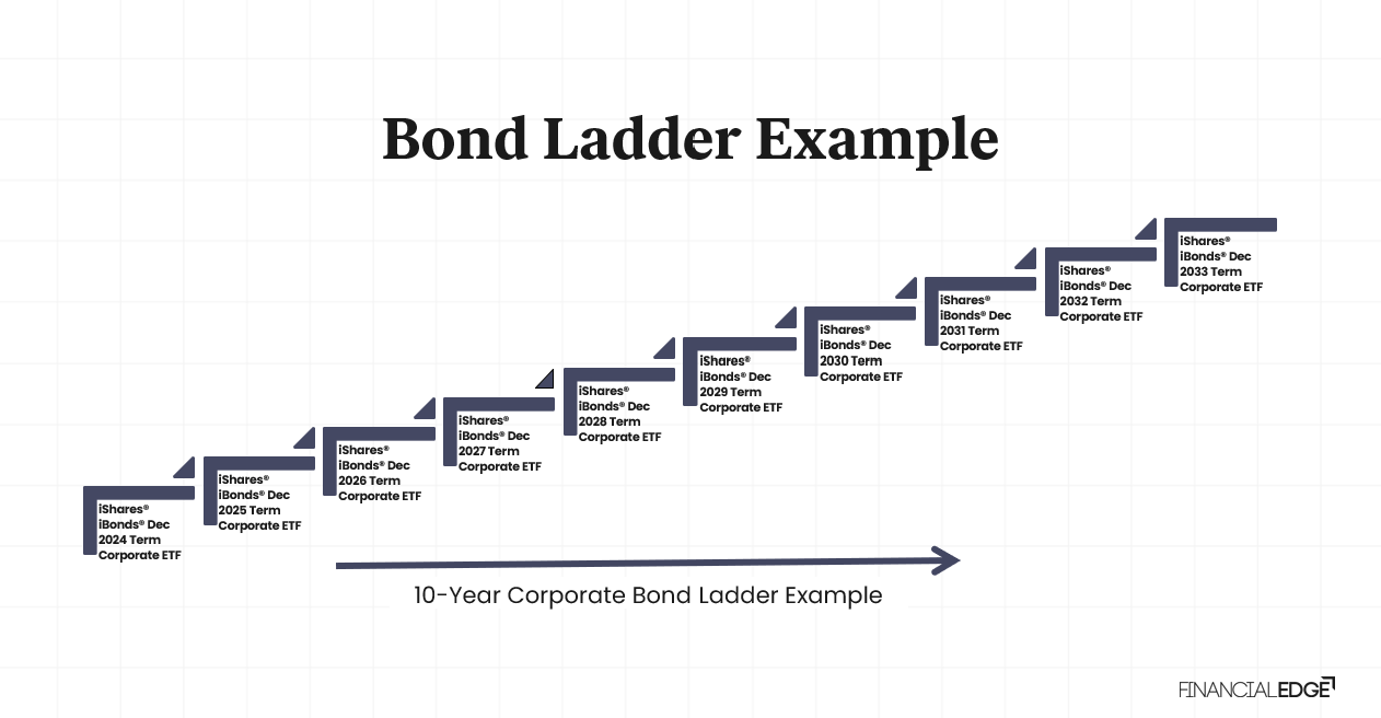 Individual rungs are comprised of ETFs – the iShares iBonds Corporate ETFs that seeks to track the investment results of an index composed of U.S. dollar-denominated, investment-grade corporate bonds with different maturities.