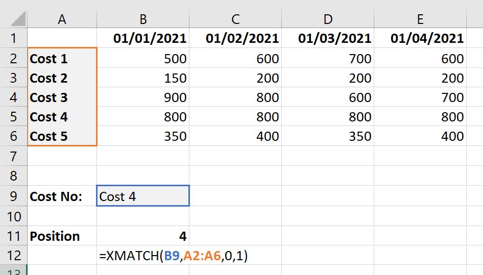 Microsoft have designed XMATCH to be a direct replacement for MATCH. Therefore, for a lot of situations the application of XMATCH is exactly the same as it would be for MATCH. In this example of XMATCH you could just as easily use MATCH!