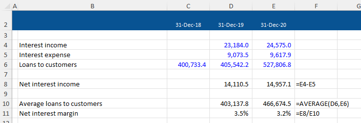 We can now calculate net interest margin as follows: