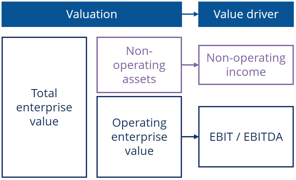 - It is important to exclude non-core assets from the EV calculation as their associated income is not included in the value driver (EBIT or EBITDA)
