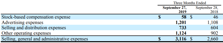Selling, marketing and administrative (“SM&A”) expenses increased $27.4 million or 6.0% in the third quarter of 2019. Total advertising and related consumer marketing expenses increased 10.5%, driven by advertising increases in North America. Selling, marketing and administrative expenses, excluding advertising and related consumer marketing, increased approximately 3.5% in the third quarter due to increased spending related to personnel-related costs.