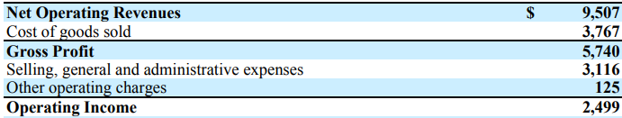 Below is an extract of the income statements of Coca Cola from their three months end quarterly 10-Q report 2019: