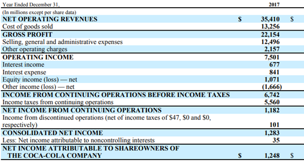 Lets look at the calculation for Coca-Cola’s Operating margin in 2017:
